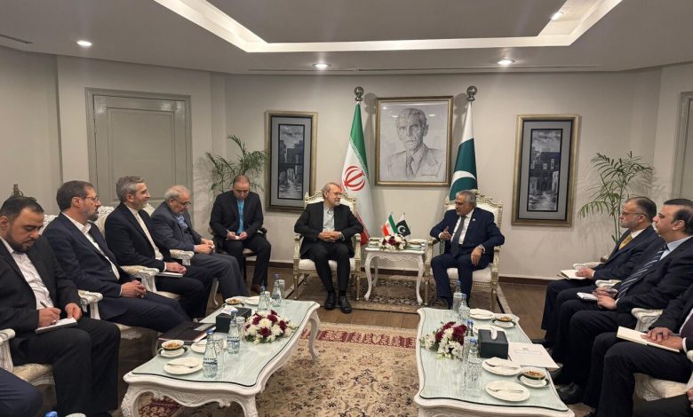 دیدار لاریجانی با وزیر خارجه پاکستان/تاکید اسلام‌آباد بر اهمیت روابط برادرانه با تهران+عکس
